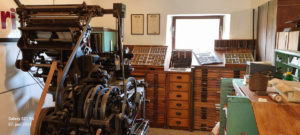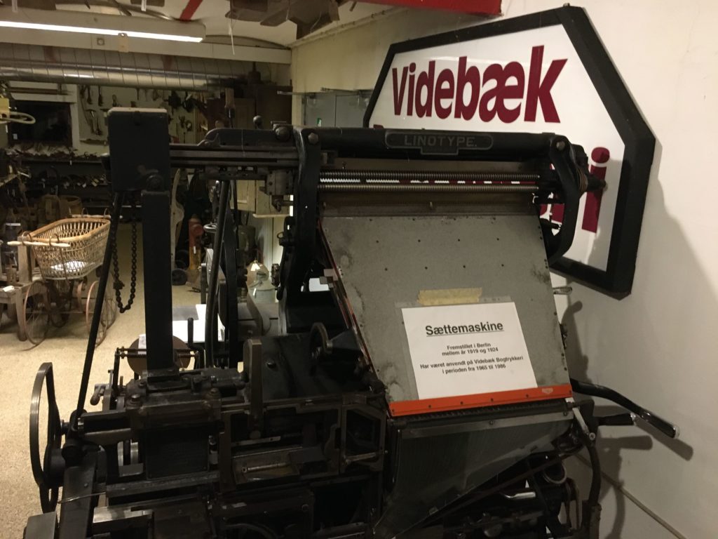 Trykkerimaskinen er fra 1919 og stammer fra Videbæk Bogtrykkeri, og fungerede der indtil 1984. Er efterfølgende foræret til Videbæk Egnsmuseum. Emil Korshøj der betjente den der, har også haft den startet op på museet. Men efter Emil´s død i 2025 havde vi et problem. Men ved hjælp af Viborg Bogtrykmuseum fik vi gang i den igen, selv om rusten driller lidt. Men det er også en maskine med ca et tusind bevægelige dele.